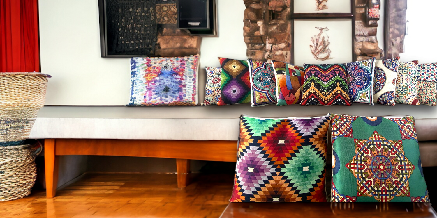 Goblen Dokuma Pamuklu Dekoratif Kırlent / Yastık Kılıfı