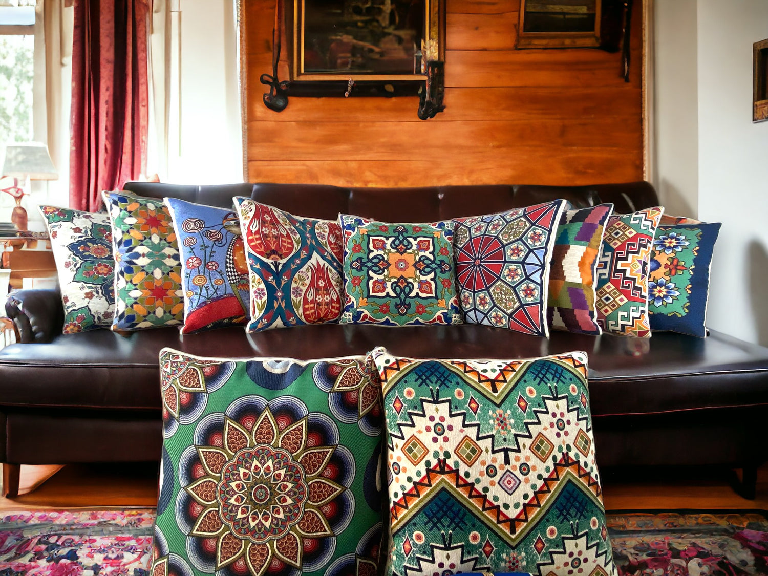 Jakarlı Goblen Pano Dokuma Lale Dekoratif Kırlent / Yastık Kılıfı