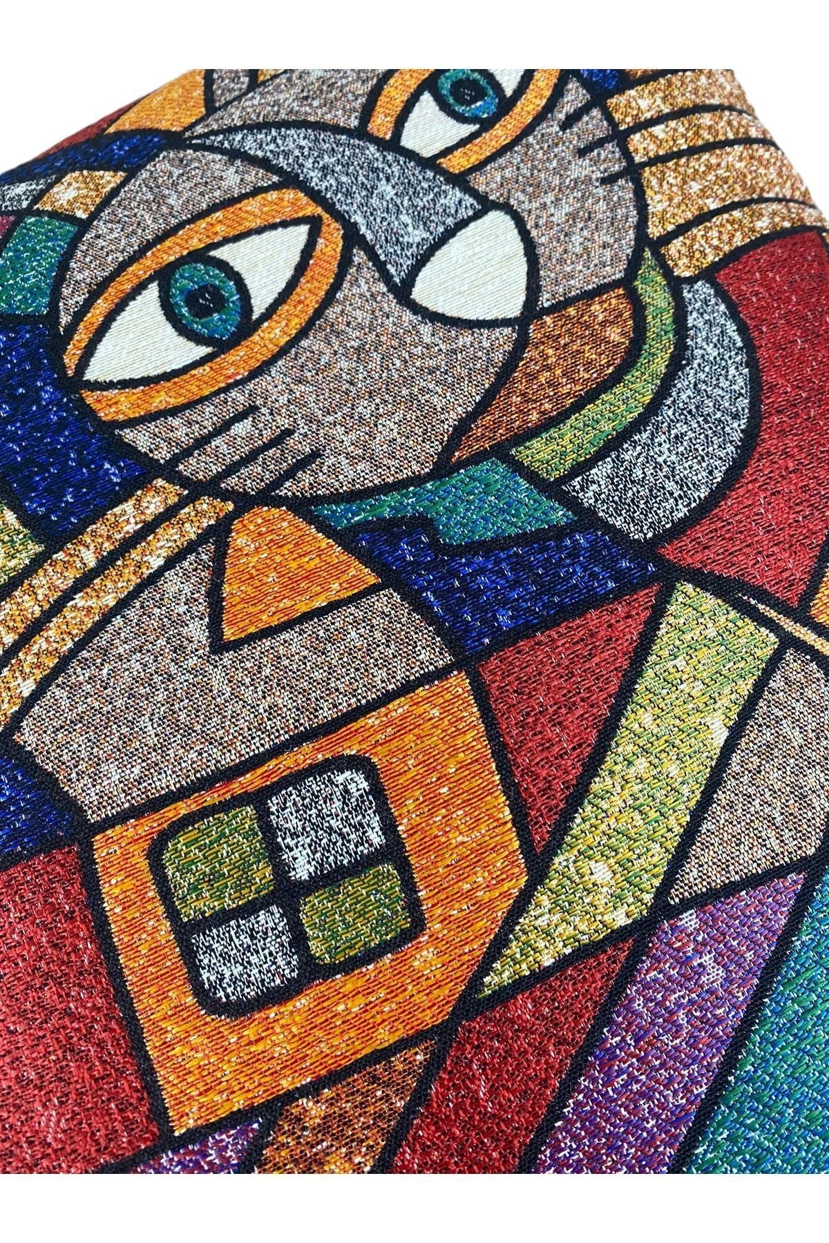 Jakarlı Goblen Pano Dokuma Picasso Kedi Dekoratif Kırlent / Yastık Kılıfı
