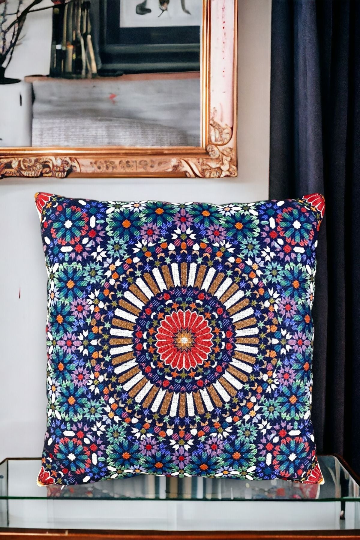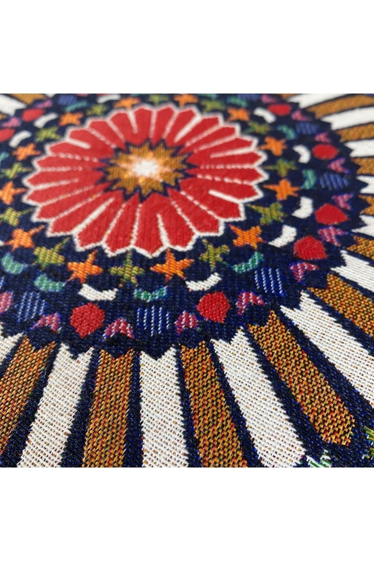 Jakarlı Goblen Pano Dokuma Yeşil Mandala Dekoratif Kırlent / Yastık Kılıfı