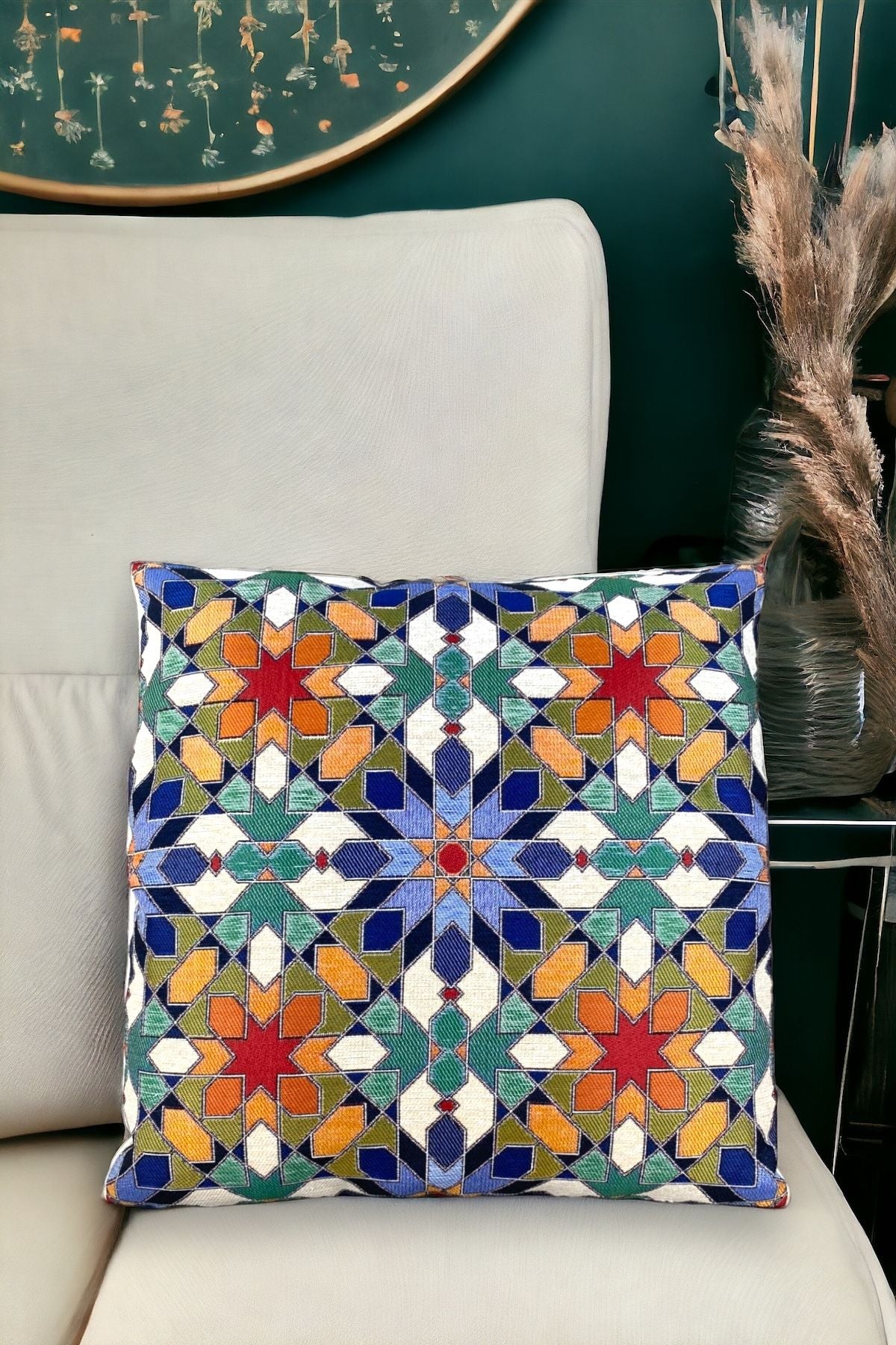 Jakarlı Goblen Pano Dokuma Yeşil Mandala Dekoratif Kırlent / Yastık Kılıfı