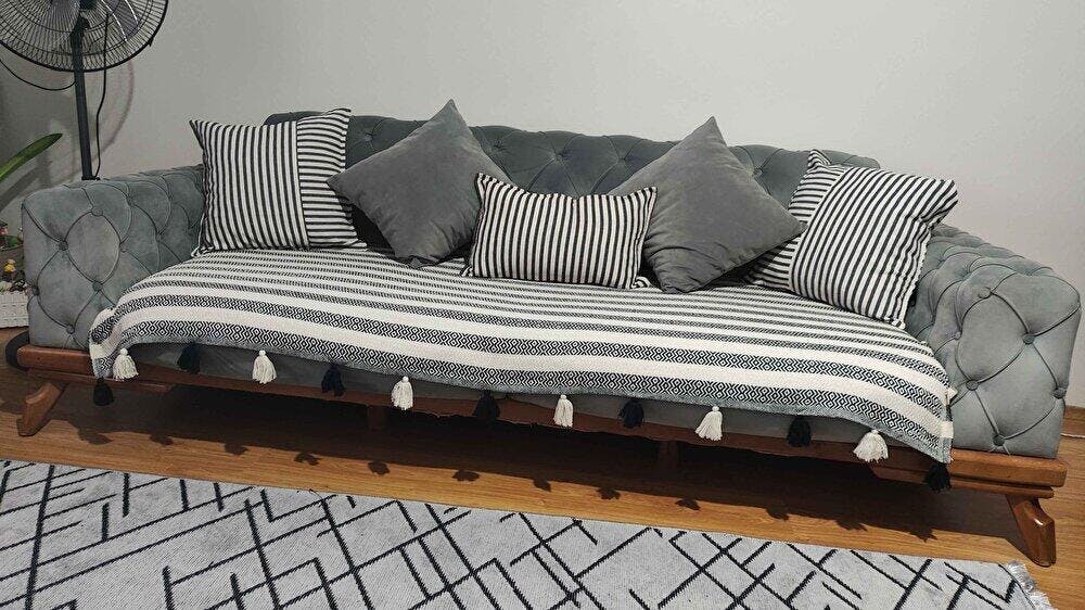 Pamuklu kumaştan üretilen bu kırlent kılıfı, doğal dokusu sayesinde cildinizle uyum içinde bir kullanım sağlar. Yumuşak ve nefes alabilir yapısıyla uzun süreli rahatlık sunar. Hem estetik hem de işlevsel bir tercih olarak evinizin havasını değiştirir.