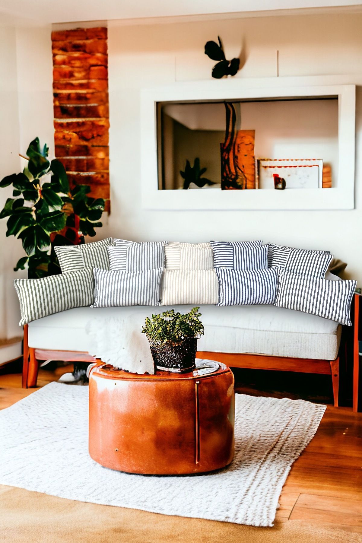 Modern Çizgili Pamuk Dekoratif Tek Yastık / Kırlent Kılıfı