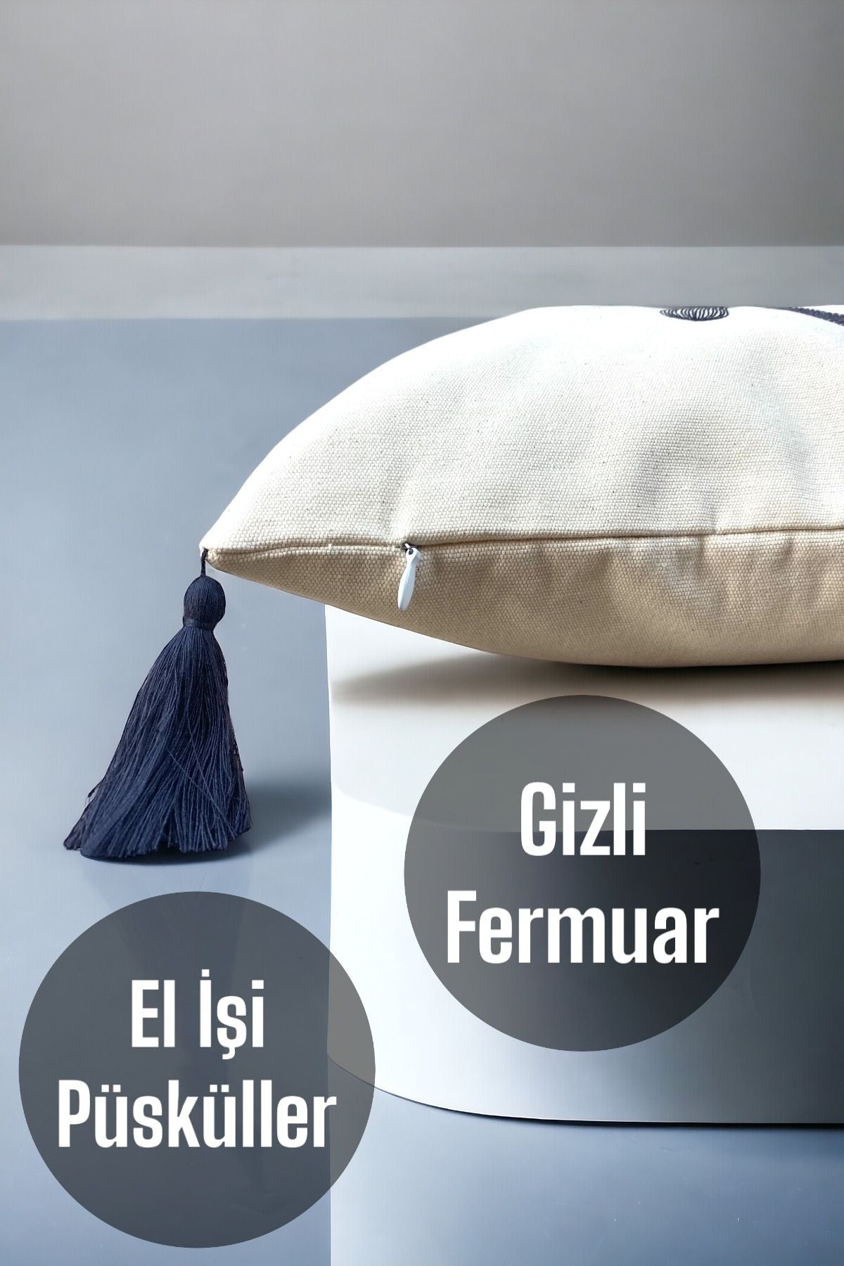 Kırlent kılıfına zarif ve temiz bir görünüm kazandırır. Fermuarın gizlenmiş olması, dekoratif amaçlı kullanımlarda estetiği bozmaz ve kılıfın düzgün durmasını sağlar. Aynı zamanda fermuar sayesinde kılıfı kolayca çıkarıp temizlemek de oldukça pratiktir.