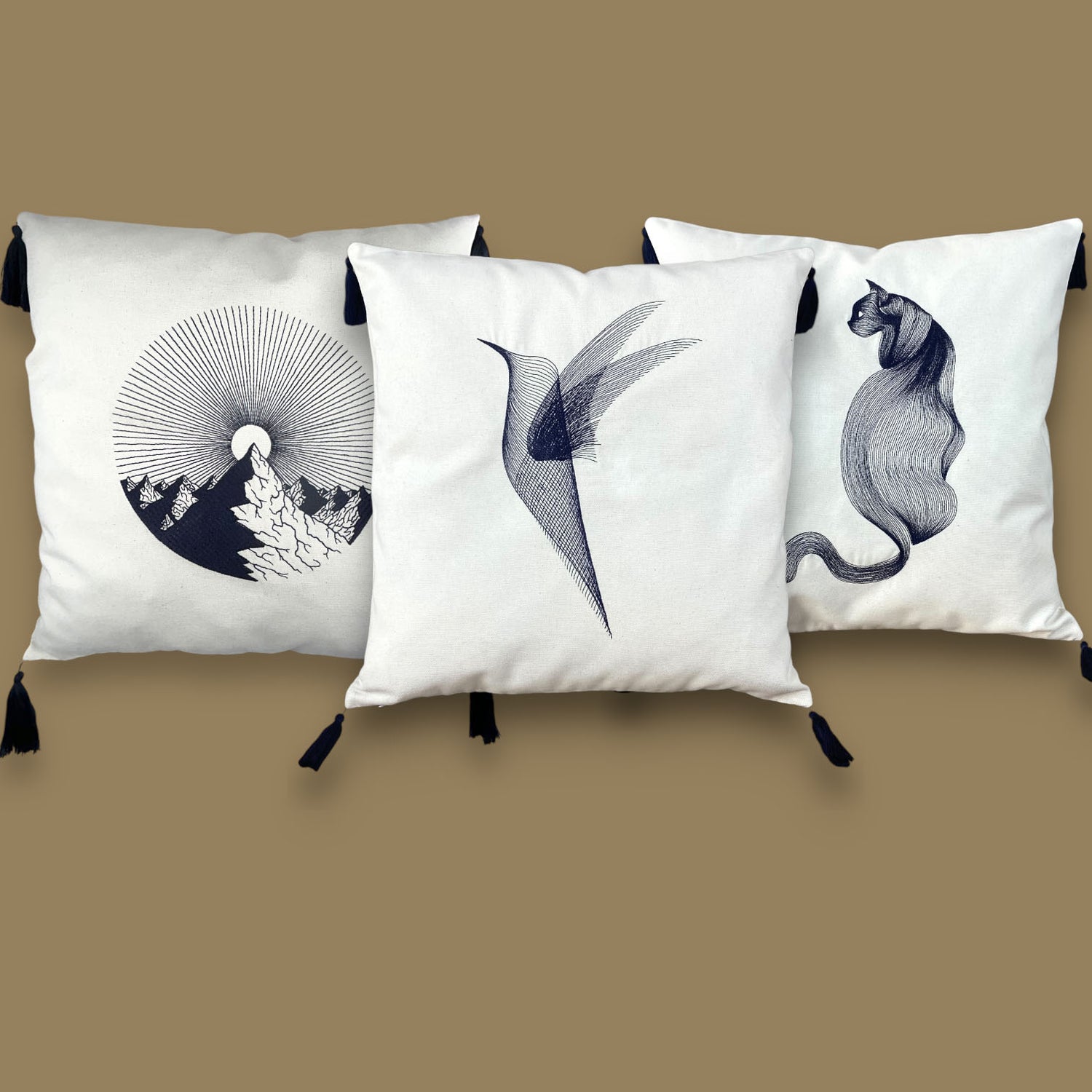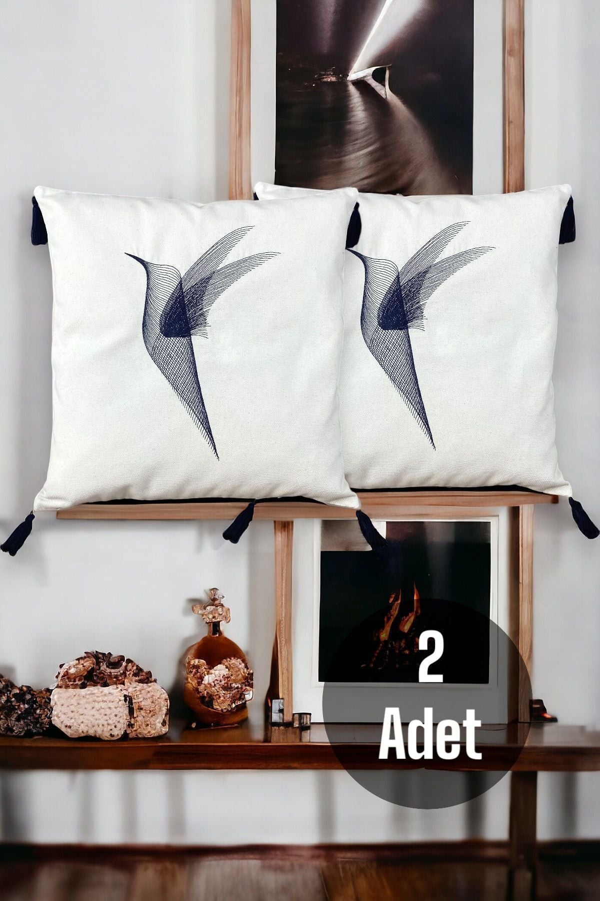 Nakışlı Püsküllü Pamuklu Dekoratif 2'li Kırlent / Yastık Kılıfı