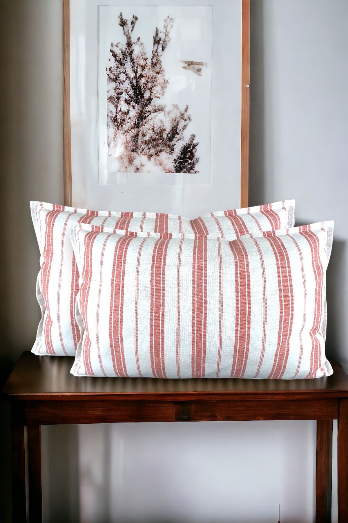 Pamuk Modern 2'li 30x50 Dekoratif Turuncu Çizgili Kırlent / Yastık Kılıfı