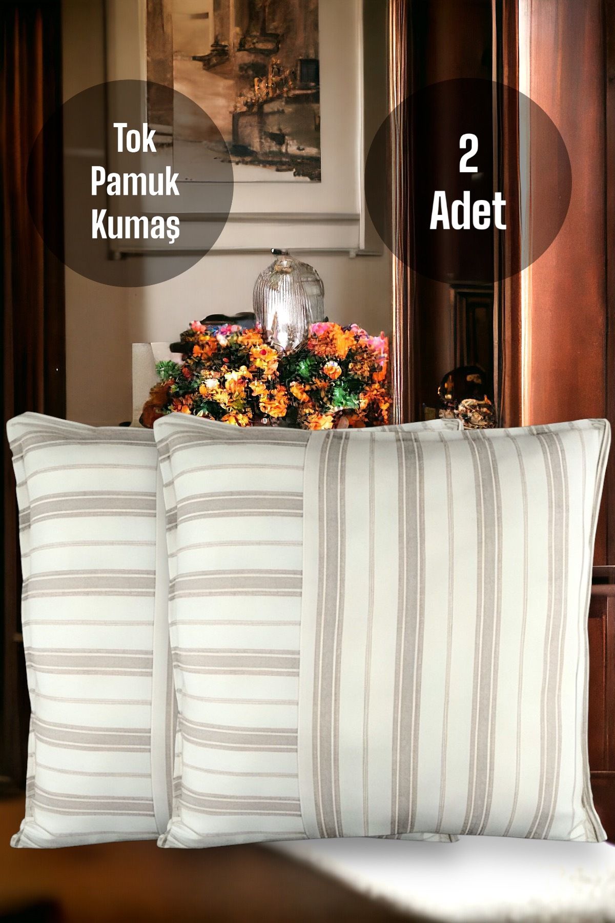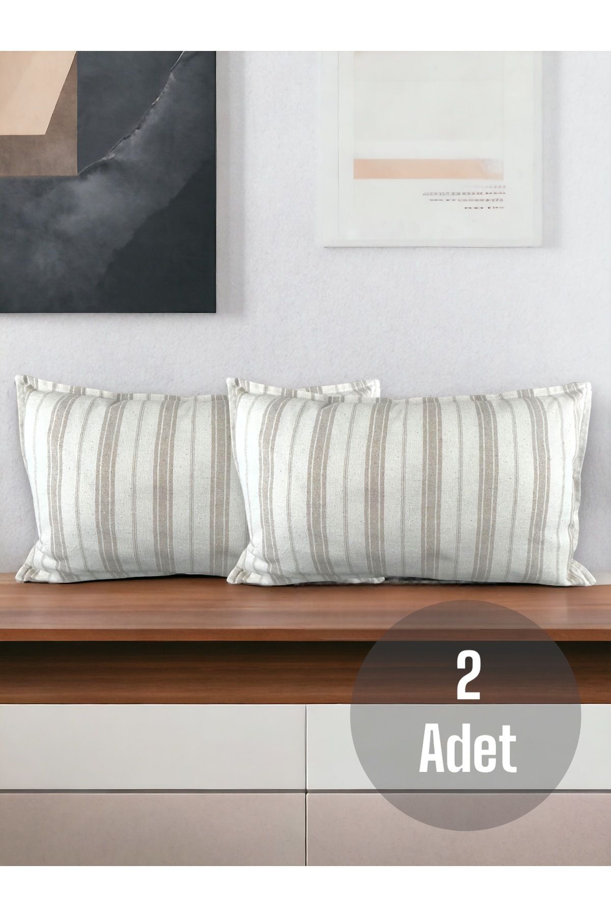 Pamuk Modern Kahverengi Çizgili Dekoratif 2'li Kırlent / Yastık Kılıfı