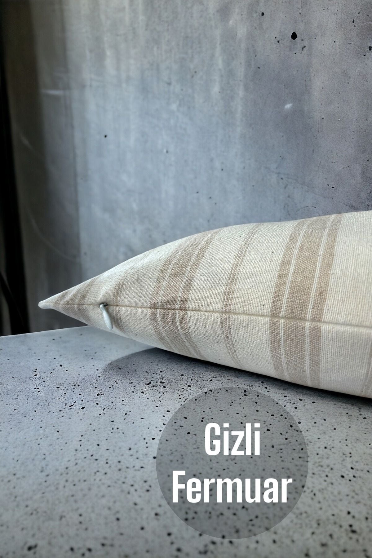 Kırlent kılıfına zarif ve temiz bir görünüm kazandırır. Fermuarın gizlenmiş olması, dekoratif amaçlı kullanımlarda estetiği bozmaz ve kılıfın düzgün durmasını sağlar. Aynı zamanda fermuar sayesinde kılıfı kolayca çıkarıp temizlemek de oldukça pratiktir.